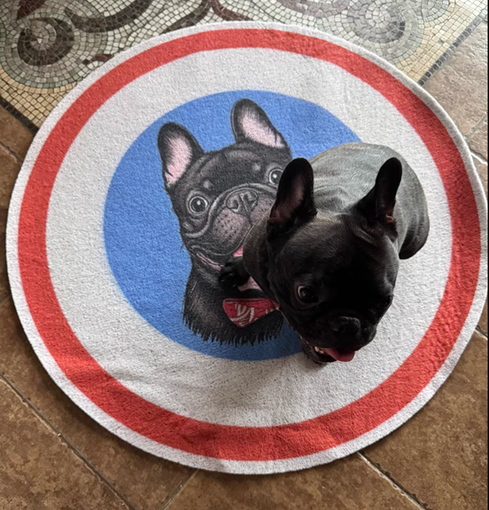 After your order is placed, our designer creates a realistic hand-drawn illustration of your pet from your photo and builds the full rug design using your chosen template, colors and text.